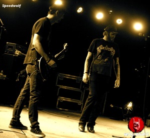 So, after the first round at all four stages, I was back at the Glass House to catch the last 15 minutes of Denver, Colorado speed metal/crossover thrash band Speedwolf‘s set. They absolutely annihilated the crowd at last year’s Thrasho De Mayo event, but the barricaded setting here at the Glass House largely prevented them and their fans from achieving anywhere near the same levels of intensity and insanity. But during the last song, vocalist Reed Bruemmer encouraged the fans to challenge the security staff and break the rules, and sure enough, one dude made his way onto the stage, grabbed the mic from Reed, yelled a few chorus lyrics into it and dived back into the crowd. The security staff were cool about it and laughed it off, keeping the atmosphere positive and jovial as a result. Speedwolf certainly have done and will do better shows than this one, but for their die-hard fans it still seemed like a fun experience.