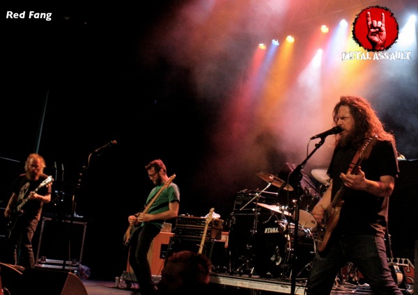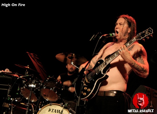 Descending down the four flights of stairs, I entered the Fox once again to catch High On Fire‘s set, which would be one of the low points of a largely entertaining day of music, and yet another weak performance on this particular stage. I first saw High On Fire open for Megadeth in 2008, then for Opeth later that same year and as headliner at the Viper Room in late 2010. In all honesty, I despised their performance on all three of those occasions, but with the vast amounts of music I’ve been exposed to since that time which has led to a natural progression and evolution in my musical tastes, I figured I might enjoy High On Fire this time, and just might perceive them differently. But alas, they failed to make any kind of impact. There’s no doubt that they have great guitar riffs, but there’s absolutely nothing else redeeming about their music and as a result, the riffs don’t serve much purpose. Matt Pike and ‘s vocal delivery is terrible and the rhythm section is spineless and toothless. As a three-piece, how a band can survive with such major shortcomings is beyond me. But may be it’s just me, because everyone I know loves and worships this band. For me this High On Fire set took the cake as the worst performance of the show.