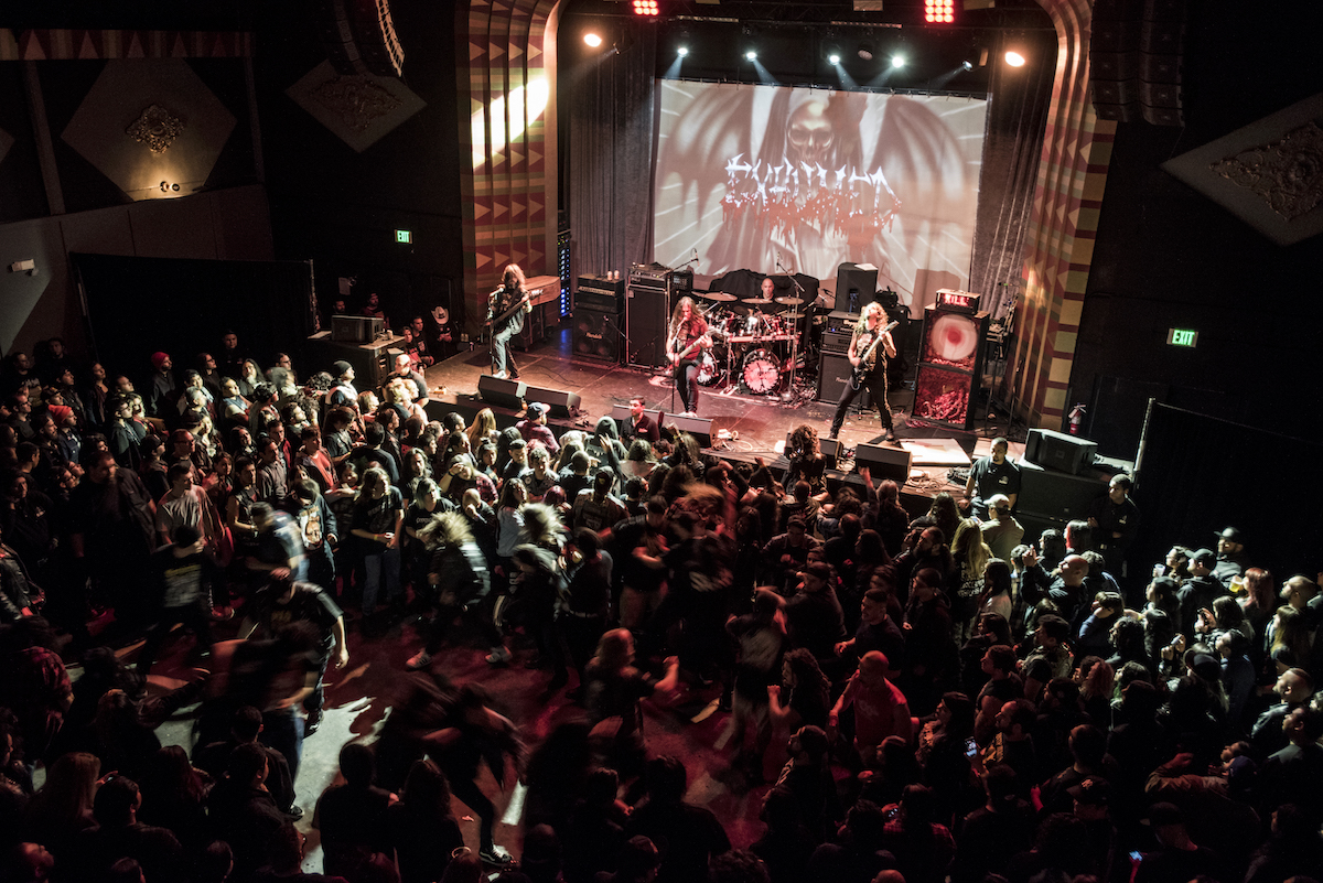 Starting their 30-minute set at 8 PM was the band perhaps most metalheads were waiting for, Northern California death metal/grindcore group Exhumed. The Matt Harvey-fronted outfit enjoys a tremendous fan-following in the LA area and for good reason, as LA has most never experienced a bad Exhumed show. With the brutal, deadly precision of the musicians in the band and the theatrics that typify any Exhumed live performance, the band was at the peak of their powers and lived up to the big occasion with a fantastic set. They played a variety of tunes even within this short duration, going all the way back to their very first album, and instigated the fastest, most violent mosh pits of the evening. There is no denying that the three bands that followed them justifed their billing, but Exhumed’s LA fans would undoubtedly have loved to see them get a higher slot and play a longer set here, and will eagerly await the band’s return to these parts.
