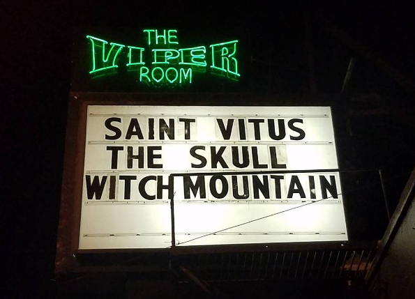 October 21st 2016, The Viper Room, West Hollywood CA: Doom metal has always had a strong impact on the heavy metal movements and genres throughout the years, and despite a few moments of fade-out, it has risen with a vengeance as of late. Saint Vitus along with Trouble and of course Black Sabbath are among the founders of this genre and are also three very different bands. On Friday October 21st 2016 at the Viper Room on the slowly dying Sunset Strip, Saint Vitus headlined their current tour with The Skull and Witch Mountain. All of these groups have an interesting track record and have been through some major line up changes that have affected them in various ways. Continue reading “Holy Trinity Of Doom: Saint Vitus, The Skull & Witch Mountain Pack The Viper Room”